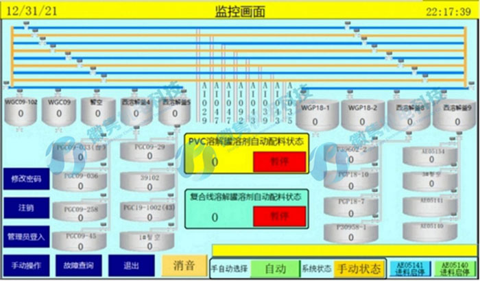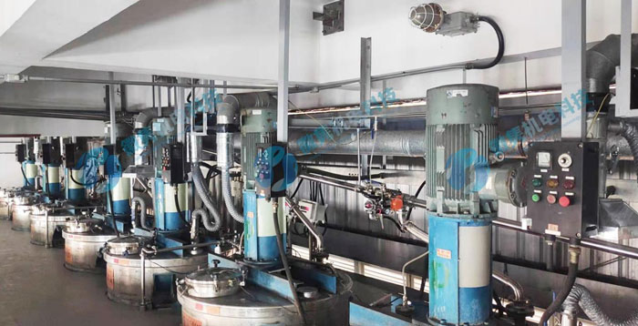 徽雋公司工程師們針對傳統(tǒng)油墨工藝:顏色種類多的繁雜特點,進行工藝調整,目的達到全面產線升級。首先由工藝工程師根據樂通公司廠房情況,量身布置設備和閥門、管路;再由電氣工程師按照甲類防爆要求,觸摸屏、電控柜、PLC電氣控制等系統(tǒng)設計,以系統(tǒng)全自動控制為核心,進行生產數據及時、準確的采集,增強生產管控力,對生產中的進料、配料、生產流程等進行有效的監(jiān)督控制。