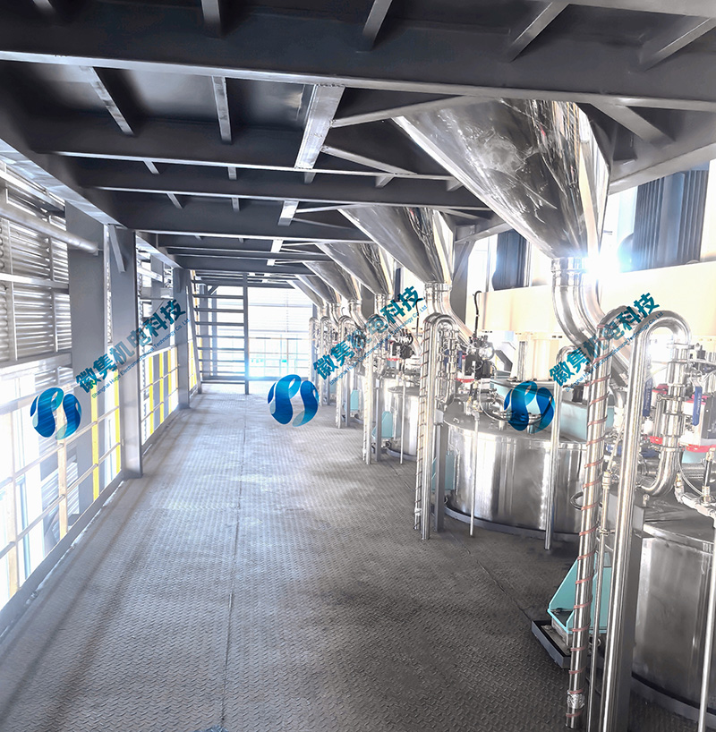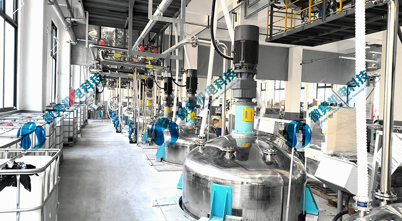 所用設(shè)備:雙軸高速分散釜、攪拌釜、高位槽、助劑罐、無(wú)塵粉體投料站。