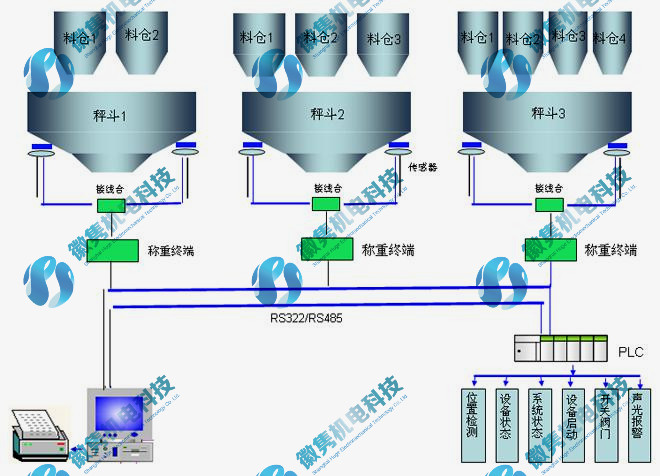 生產(chǎn)配方工藝的管理,需要計算出各物料的投放量,設(shè)定各設(shè)備運行參數(shù),來滿足配比要求。而采用PLC控制、配合專業(yè)開發(fā)的配料控制軟件程序包,接受傳感器反饋信號,控制各執(zhí)行元器件,系統(tǒng)地實現(xiàn)了物料計量傳送、配料控制、配方管理、生產(chǎn)數(shù)據(jù)采集管理等功能??梢詫I(yè)解決配料過程中下料沖擊和空中懸料誤差的自動校正問題,提高配料精度。還可以通過網(wǎng)絡(luò)實現(xiàn)多個配料系統(tǒng)的集合控制。